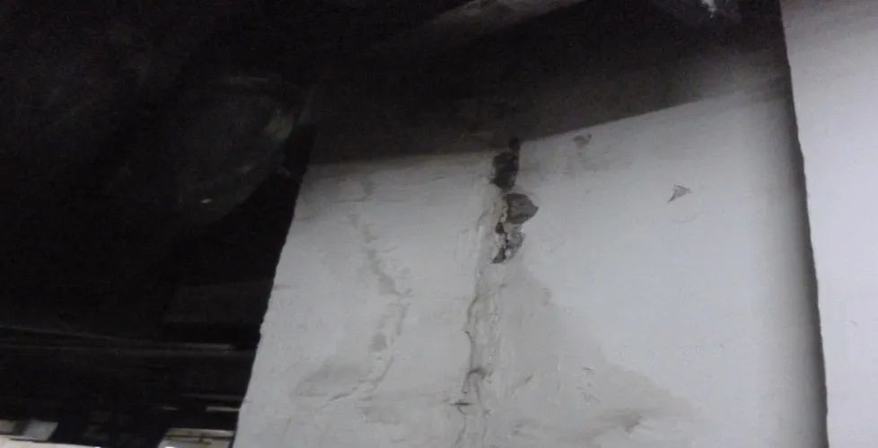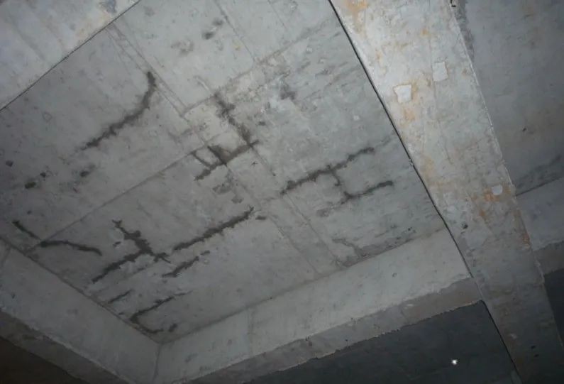 因場地限制,在主樓施工階段在地下室頂板上進(jìn)行材料堆放和泵車架設(shè),地下室頂板樓板結(jié)構(gòu)裂縫。