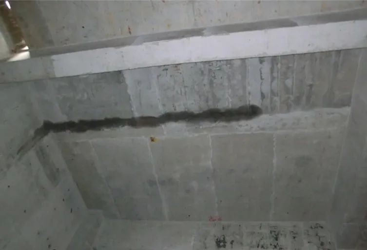 地下室采光井上部反沿施工縫滲水,一般結(jié)構(gòu)施工階段均留置施工縫,后進(jìn)行反沿施工。